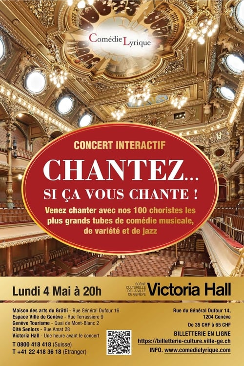 Karaoké géant, comédie lyrique romande, Victoria Hall, 4 mai 2026. Vous aimez chanter, vous aimez les émotions fortes, vous aimez le partage de moments exceptionnels, alors venez goûter l’expérience unique du concept « Chantez si ça vous chante » !