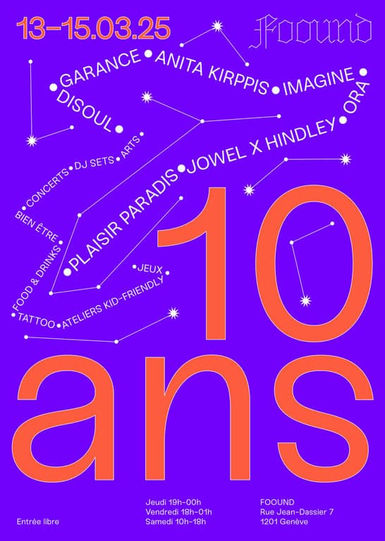 À l’occasion de son 10e anniversaire, FOOUND organise 3 jours de festivités, réunissant plus de 30 artistes et intervenant·e·s. Performances, concerts, DJ sets, tattoo, nail art, et bien plus encore!