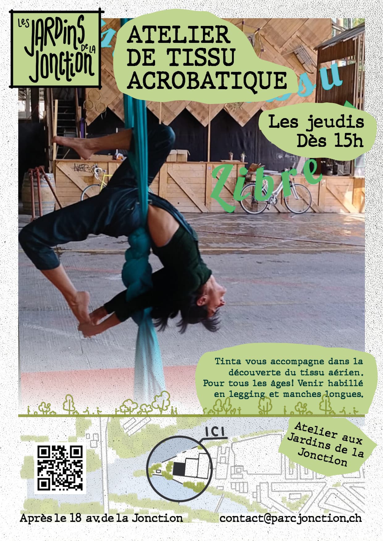 Tinta vous accompagne dans la découverte du tissu aérien, pour tous les âges ! Venir habillé en legging et manches longues.