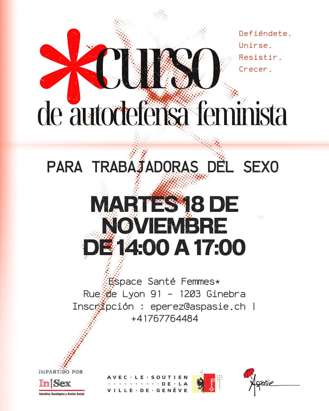 En el marco de la campaña del 25 de noviembre contra la violencia sexista y sexual, Aspasie e Insex ofrecen un taller de autodefensa en español dirigido a trabajadoras y trabajadores sexuales.