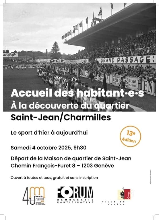Cette année, la balade va s’organiser autour de la thématique du sport. Aux Charmilles et à Saint-Jean, le sport a une histoire riche et surprenante. Beaucoup ont connu le mythique stade des Charmilles, ancien temple du Servette FC, mais peu savent qu'il y avait un deuxième “Parc des Sports” et qu’on a aussi pratiqué le golf, le patin à glace, ou assisté à des courses à l’hippodrome dans notre quartier !