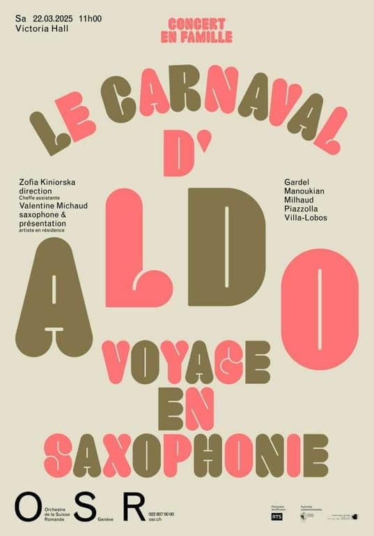 Départ pour l’Amérique du Sud, ses plages, ses clubs et ses rythmes chaloupés, pour suivre les aventures d’Aldo, le jeune saxophone qui aime par-dessus tout faire la fête et dont le rêve est de danser un jour avec ses cousins au célèbre Carnaval de Rio. Un conte original imaginé pour l’OSR par Valentine Michaud, artiste en résidence pour la saison 2024-25 qui vous fera découvrir la famille des saxophones, du plus petit au plus grand.