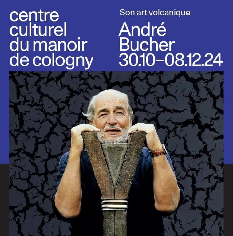 André Bucher, peintre et sculpteur genevois, de renommée mondiale, a consacré cinquante années de sa vie à son art. Il a été le premier et le seul, avec son expédition, à gravir les flancs des volcans en éruption, pour puiser la lave en fusion, source originelle de notre monde, matière de la matière, comme il aimait si bien la désigner. La lave recèle un potentiel artistique sans limites et devint une source d’inspiration inépuisable pour l’artiste. On la retrouve dans ses sculptures associées au bronze, à l’inox, l’aluminium et au plexiglas. Il parfait son art avec des dessins puissants, rouges et noirs et des peintures à la technique du craquelé, qu’il avait développée et dont il devint le maître.