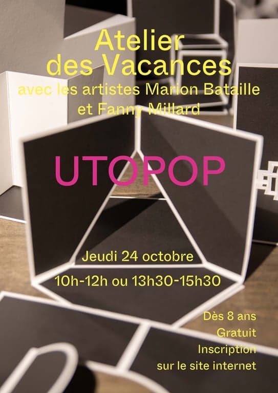 Cet atelier, animé par les artistes Marion Bataille et Fanny Millard, propose de découvrir l'univers du pop-up en construisant son architecture par la mise en volume d’un livre UTOPOP.