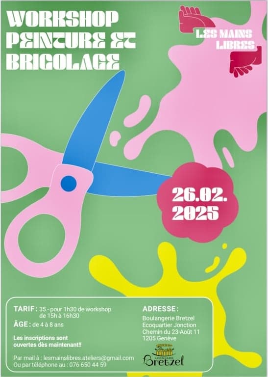 Atelier peinture et bricolage pour les enfants de 4 à 8 ans, mercredi 26.02.25 de 15h à 16h30 à la Boulangerie Bretzel