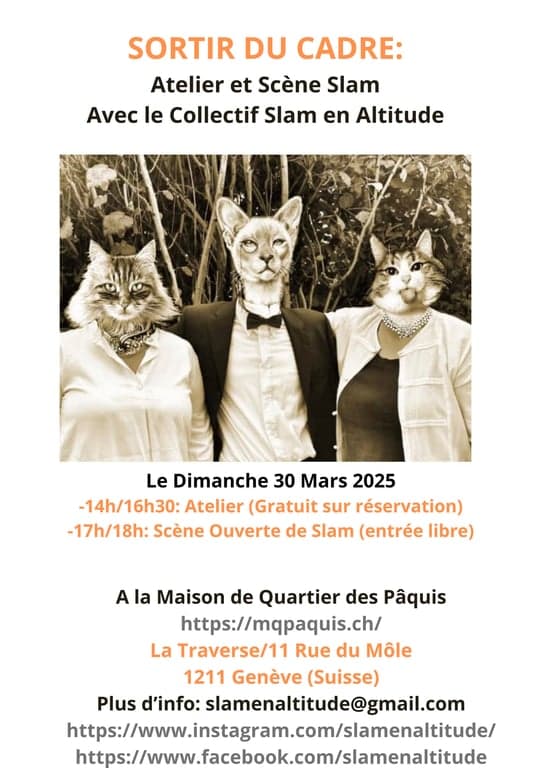 scène slam dès 17h dans la salle de théâtre pour dire - lire- interpréter vos textes ou juste écouter