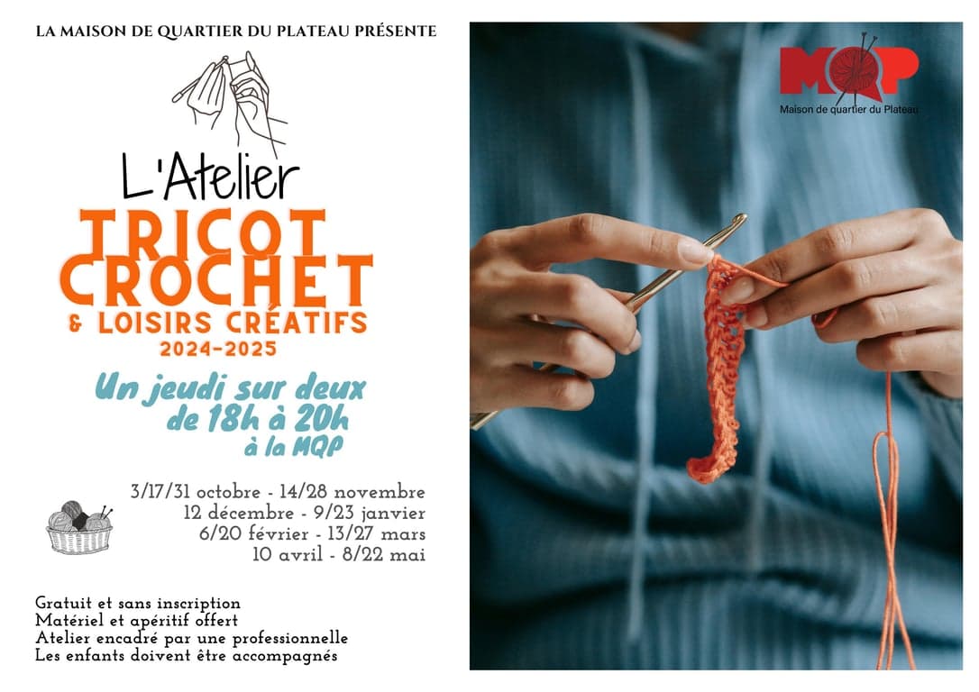L'intervenante est à votre disposition pour répondre à vos questions et proposer des idées de projets mais attention, il ne s'agit pas d'un cours de tricot et crochet.
