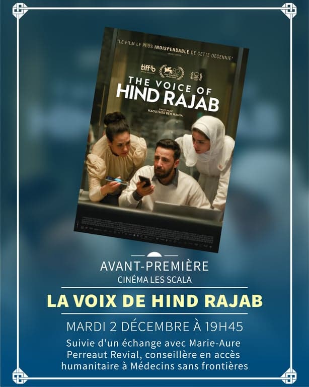 Avant-première du film poignant LA VOIX DE HIND RAJAB, suivie d'un échange avec Marie-Aure Perreaut Revial de Médecins sans frontières