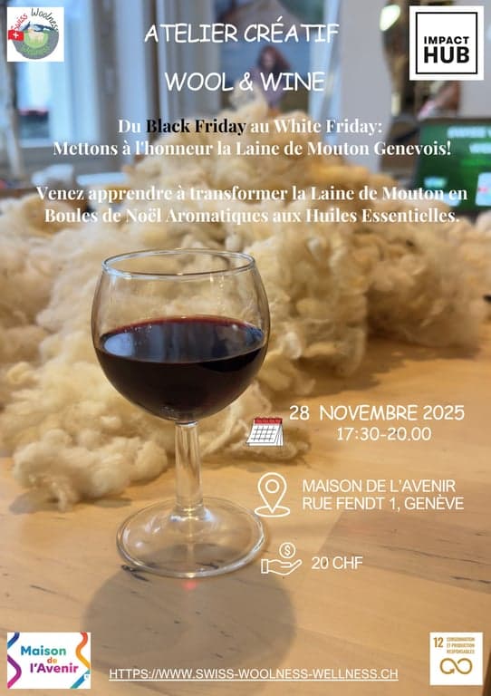 Atelier Wool & Wine – Transformez la laine de mouton genevoise en boules de Noël aromatiques aux huiles essentielles, dans une ambiance chaleureuse et conviviale.