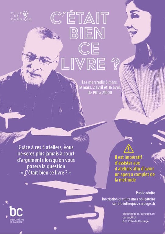 Inscription gratuite mais obligatoire : https://www.bibliotheques-carouge.ch/Default/doc/CALENDAR/330/c-etait-bien-ce-livre