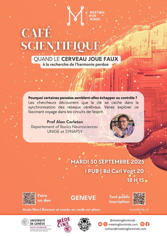 Au programme : une présentation vulgarisée par le Professeur Alan Carleton, de l’Université de Genève, chercheur reconnu en neurosciences fondamentales, suivie d’un temps d’échange et de questions avec le public.