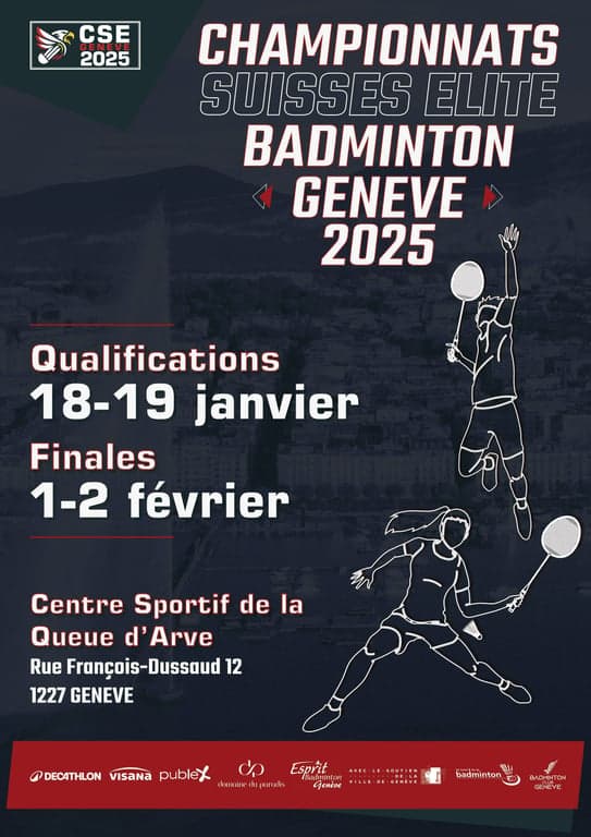 Championnat national des élites suisse de badminton. Au centre sportif de la Queue d'Arve les samedi 1er et dimanche 2 février. Retour à Genève après 20 ans.
