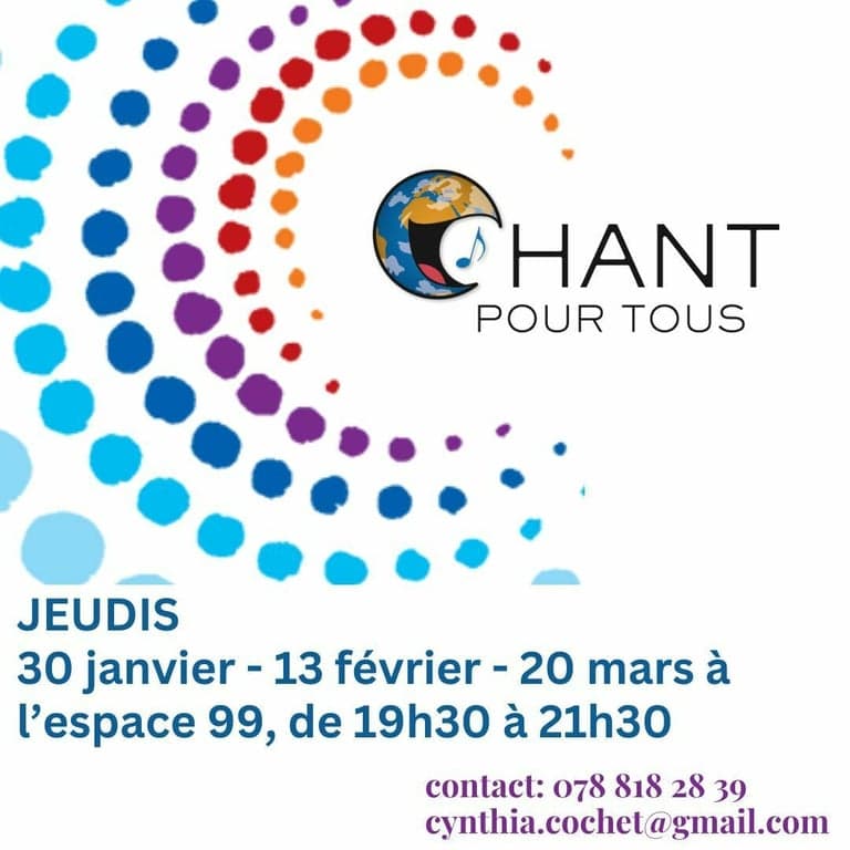 Exploration vocale, de l'échauffement vocal et corporel, des jeux, du rythme, du chant improvisé a capella, inspiré des circle songs et de la co-improvisation, ouvert à toutes à tous, dans un cadre bienveillant, pour chanter ensemble, savourer les vibrations.