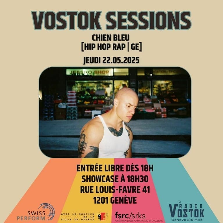 Alors que le rap devient toujours plus punk, Chien Bleu, lui, en fait son paradoxe. Anciennement leader du groupe punk genevois Sergent Papou, Chien Bleu se tourne vers un rap introspectif. Entouré de deux musiciens, il fait honneur à la nouvelle vague du rap genevois. Des textes d’une maturité surprenante. Ascenseur émotionnel assuré ! (Antigel Festival, 2019)