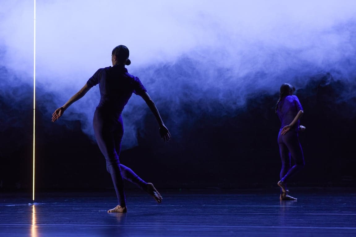 Cindy Van Acker est entrée dans Quiet Light avec le peintre flamand Léon Spilliaert : porosité des lignes, réalisme flouté, horizons vaporeux, encre de la nuit, apparences insolites. Stéphanie Bayle et Daniela Zaghini évoluent dans un espace vide où une solitude palpable est balayée par des lumières mouvantes.