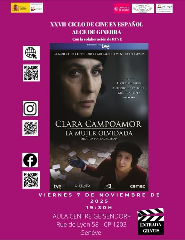 La Agrupación de Lengua y Cultura Españolas de Genève invite à découvrir Clara Campoamor. La mujer olvidada (2011), un film de Laura Mañá inspiré de faits réels. Il retrace la lutte de l’une des premières députées espagnoles qui, en 1931, fit adopter le suffrage féminin en Espagne.
