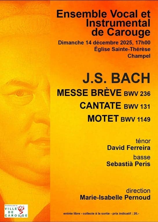 Ensemble Vocal et Instrumental de Carouge, direction Marie-Isabelle Pernoud, oeuvres de J.S. Bach, Eglise Sainte-Thérèse 14 décembre 2025 17h00