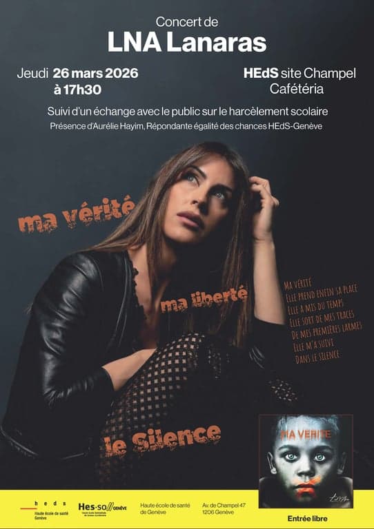 Nous vous proposons de venir découvrir sa musique et de profiter d'un moment d'échange avec elle sur la thématique du harcèlement. Mme Aurélie Hayim, répondante égalité des chances pour la HEdS-Genève, prendra également la parole à cette occasion.
