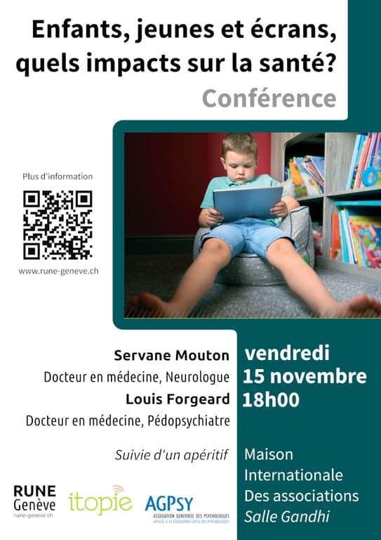 Cette conférence, va aborder le sujet sensible des effets des écrans sur la santé et en particulier chez les jeunes. Deux spécialistes de la question viendront en parler.