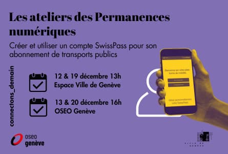 Pour pouvoir gérer ses abonnements de mobilité comme pour les TPG ou les CFF et solliciter les réductions ou remboursements (-25 ans, AVS/AI), il faudra désormais créer un compte SwissPass. Afin de guider la population dans ces démarches, la Ville de Genève et OSEO Genève organisent des ateliers pratiques. Dans une ambiance conviviale et bienveillante, vous découvrirez et apprendrez à utiliser les outils numériques du quotidien.