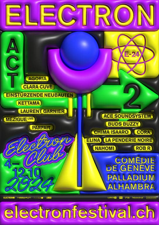 Après une incursion au origines de la musique électronique à Détroit en quatre événements pluridisciplinaires lors du premier volet, Electron réinvestit le dancefloor en octobre avec trois soirées clubbing à l’orientation stylistique affranchie : le vendredi 4 octobre, on revisitera la House sur deux dancefloors dans le cadre inédit de La Comédie de Genève ; le vendredi suivant, le Palladium se déclinera en mode Techno / Hard Techno sous les BPM nerveux d’un line-up 100% féminin ; enfin, on clôturera cette édition le samedi 12 au Palladium avec un finish en apothéose de Laurent Garnier lui-même !