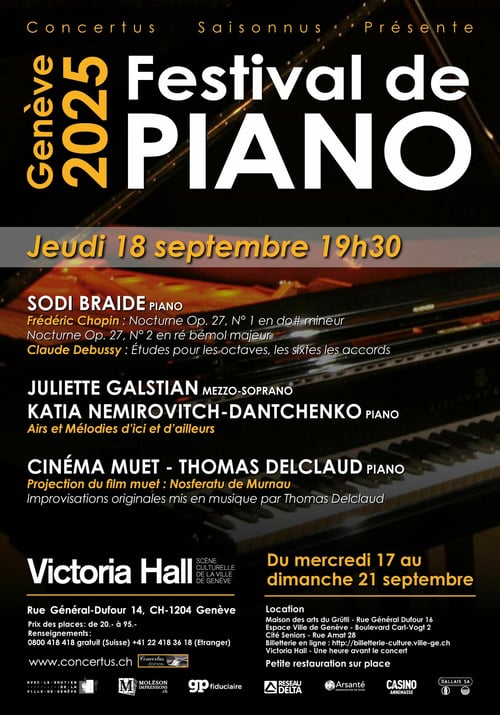 La musicologue, chanteuse et pianiste Géraldine Cloux, présentatrice idéale de nos concerts depuis plusieurs années, se chargera de vous introduire aux œuvres de ce riche programme.