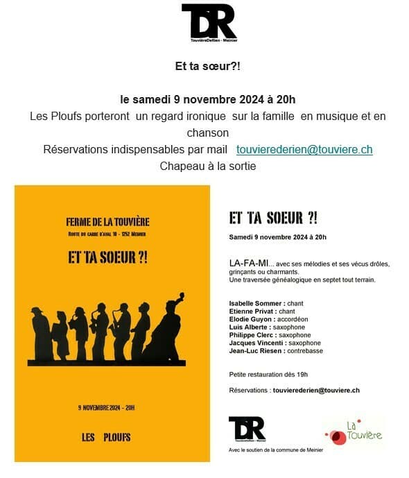 Réservation indispensable : [email protected] Chapeau à la sortie