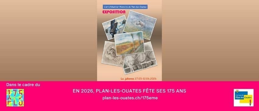 Par ailleurs, des paysages de Plan-les-Ouates, réalisés au pastel et en peinture, seront exposés dans les espaces de La julienne pour vous raconter des histoires et mettre à l’honneur la beauté et la richesse de notre commune.