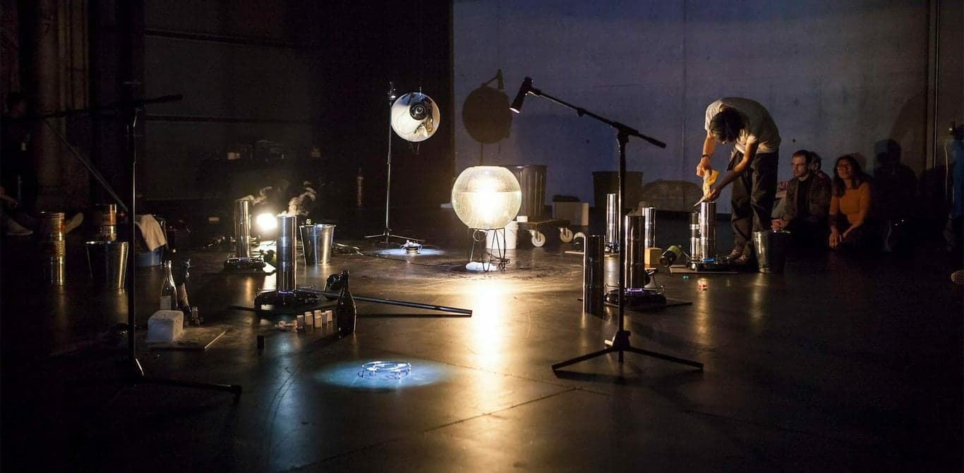 Tetsuya Umeda conçoit ses performances à partir d’objets et produits quotidiens et crée ici un parcours jalonné de dispositifs sonores. Influencé par l'idée de « Narikama », un ancien rituel japonais pratiqué depuis deux-mille ans, il installe par exemple un cylindre qui produit un son d'une beauté inattendue grâce à un procédé particulièrement simple : verser de l'eau à l'intérieur, la porter à ébullition, puis y placer une poignée de riz cru. À partir de cette séquence il multiplie les expériences – quasi culinaires – pour générer un récit chimique, alchimique et surtout poétique. Calme et concentré, préférant la lenteur, il nous fait rentrer dans un espace qui s’emplit de fumée, vapeur d’eau et volutes de glace carbonique.