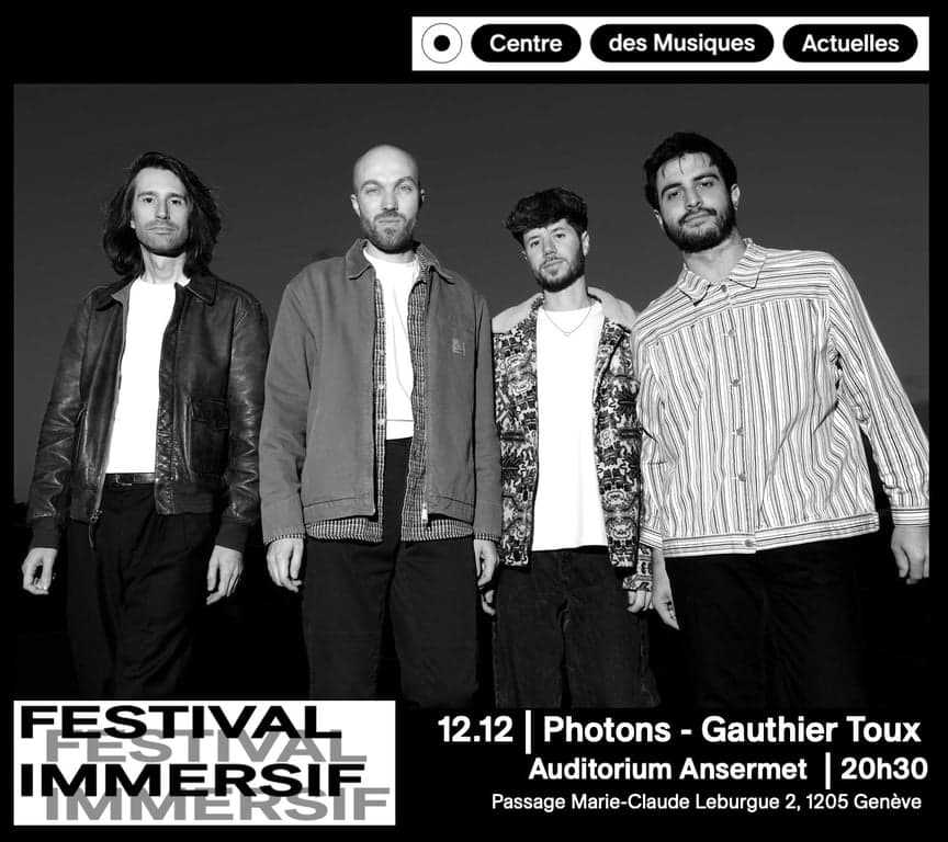 Le jeudi 12 décembre, le festival s’ouvrira avec le quartet Photons du talentueux pianiste Gauthier Toux, une fusion de jazz, house et techno, de basses profondes et de textures sonores inventives parées d’improvisations audacieuses. Une expérience sonore immersive qui s’adresse autant aux esprits qu’aux corps, mise en valeur par l’acoustique exceptionnelle de l’Auditorium Ansermet.