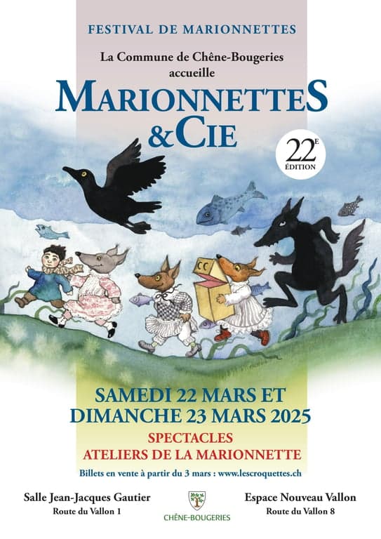 Pour sa 22e édition, le traditionnel festival de Marionnettes & Cie, organisé conjointement par la Cie des Croquettes et la Commune de Chêne-Bougeries, proposera 3 spectacles de 3 compagnies différentes tout au long du week-end pour les enfants dès 4 ans. En marge des spectacles, ne manquez pas les « Ateliers de la marionnette » pour découvrir en créant, en manipulant et en jouant, le monde des marionnettes.