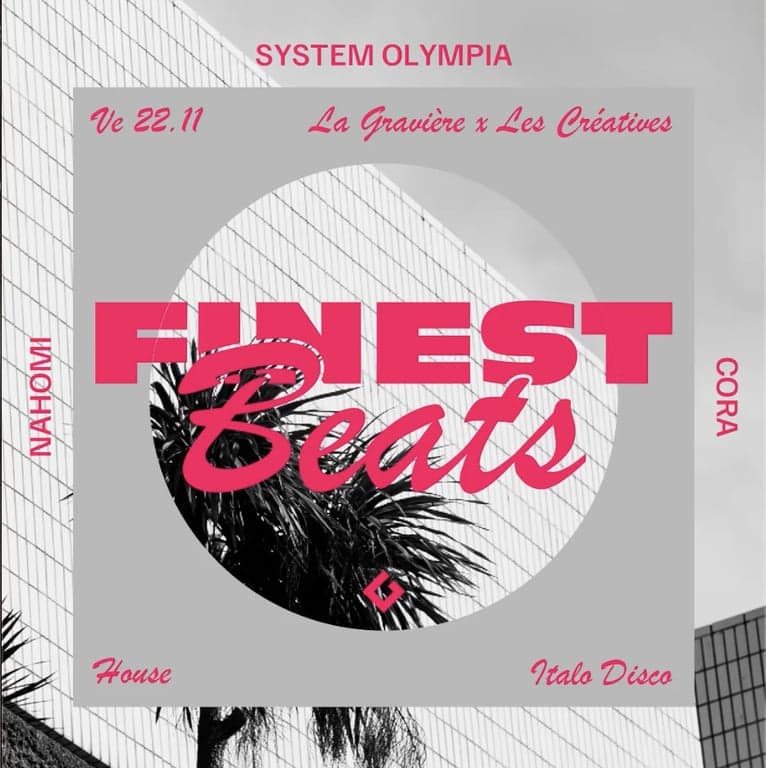 Pour la soirée FINEST BEATS, nous nous réjouissons de vibrer sur les sets de System Olympia, Cora et Nahomi !