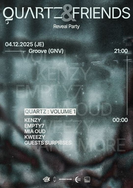 Rendez-vous le 4 décembre pour la soirée Quartz & Friends – Reveal Party en collaboration avec Ge Connekt. Au programme : des showcases de Mia Oud, Empty7, Kweezy et Kenzy 🇨🇭
