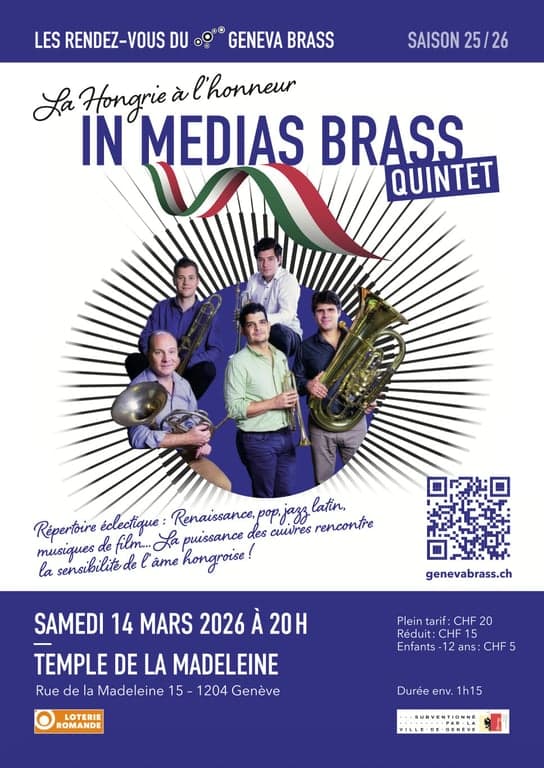 Pour ce concert la veille de la fête nationale Hongroise, le Geneva Brass a le grand plaisir d’inviter le fantastique groupe hongrois In Medias Brass.