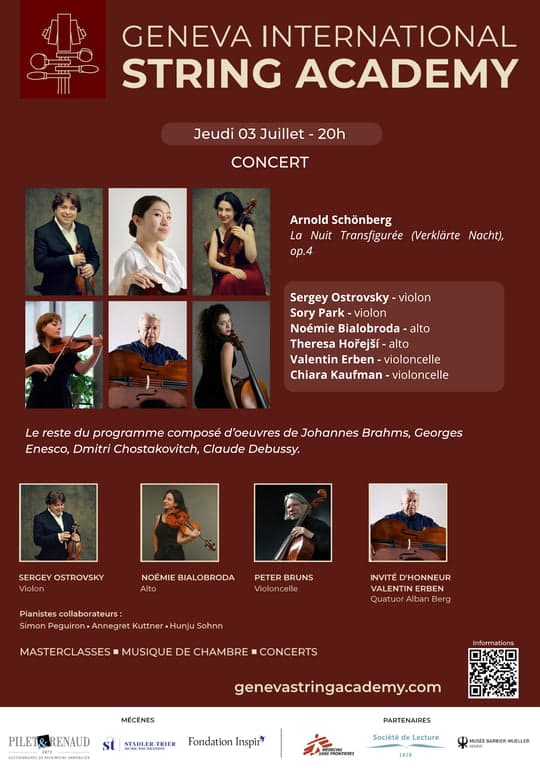 Sergey Ostrovsky - violon 1, Sory Park - violon 2, Noémie Bialobroda - alto 1, Theresa Hořejší - alto 2, Valentin Erben - violoncelle 1, Chiara Kaufman - violoncelle 2