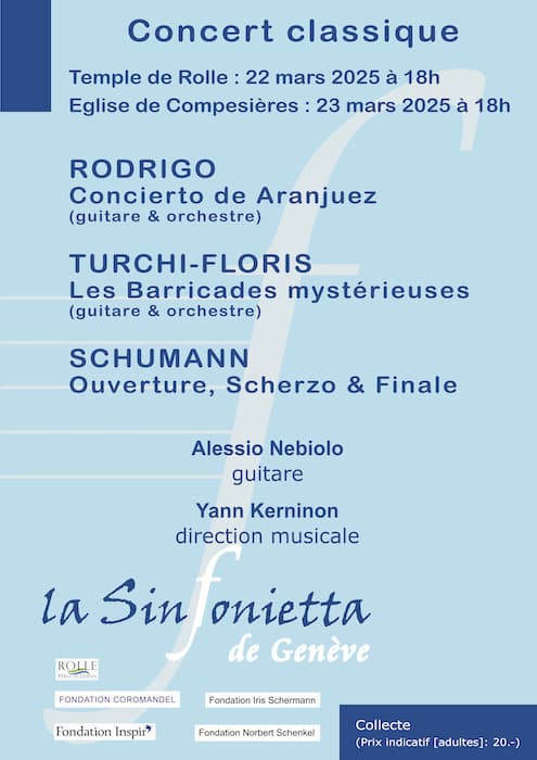 Joaquín Rodrigo, Concierto de Aranjuez Lorenzo Turchi-Floris, Les Barricades mystérieuses Robert Schumann, Ouverture, Scherzo et Finale