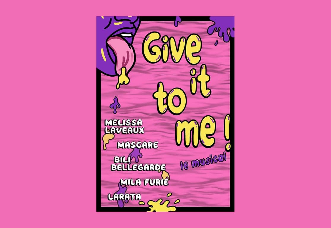 Pour Give it to me – le musical, LaRata (ESP) a proposé à plusieurs artistes d’imaginer une performance autour des chanteuses ou des thèmes issus de son livre éponyme, traduit par Virginie Despentes. Le spectacle a été imaginé avec le Cabaret La Bouche (Bili Bellegarde, Mascare, Soa de Muse), Melissa Laveaux et Mila Furie. Finalement il y a eu des duos, des reprises, des textes, des numéros de lapdance, de la guitare, des trios, des lipsyncs. Parce qu’en fait tout le monde se connaît et se répond, parce que c’est toutes des gouines et toutes des artistes qui dans leur travail ont un rapport avec la musique et avec le féminisme radical et, au final, c’est quatre-vingt minutes de show qui racontent une seule histoire: