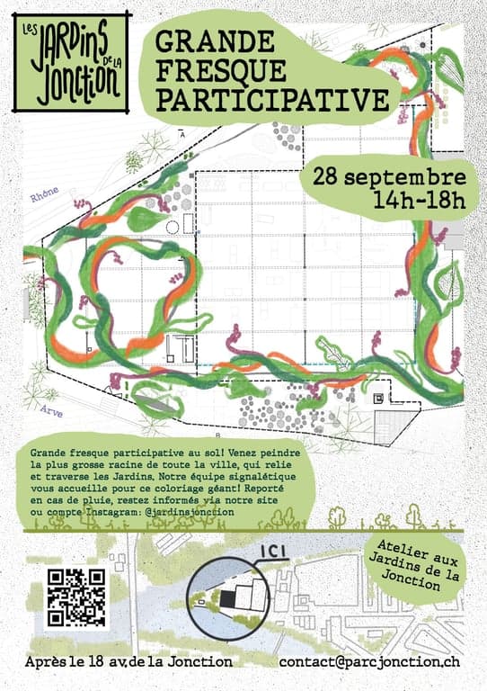 Venez peindre la plus grosse racine de toute la ville, qui relie et traverse les Jardins. Notre équipe signalétique vous accueille pour ce coloriage géant!