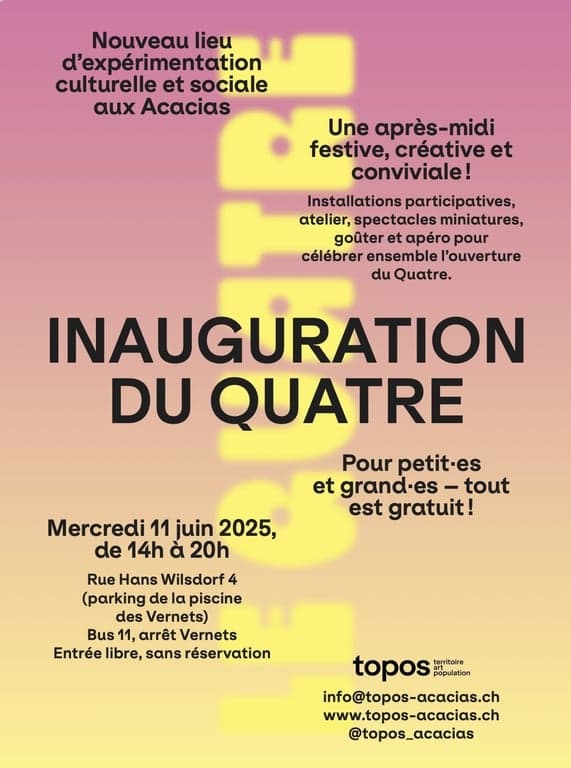 Pour sa première saison culturelle, Le Quatre proposera une programmation riche et plurielle : propositions d’artistes locaux·ales et internationaux·ales, émergeant·es et confirmé·es, mais aussi projets imaginés et portés par les habitant·es et usager·ères du quartier. À la croisée des générations, des cultures et des pratiques, Le Quatre s’affirme comme un espace de résonance, où les différences se rencontrent et deviennent une richesse partagée.