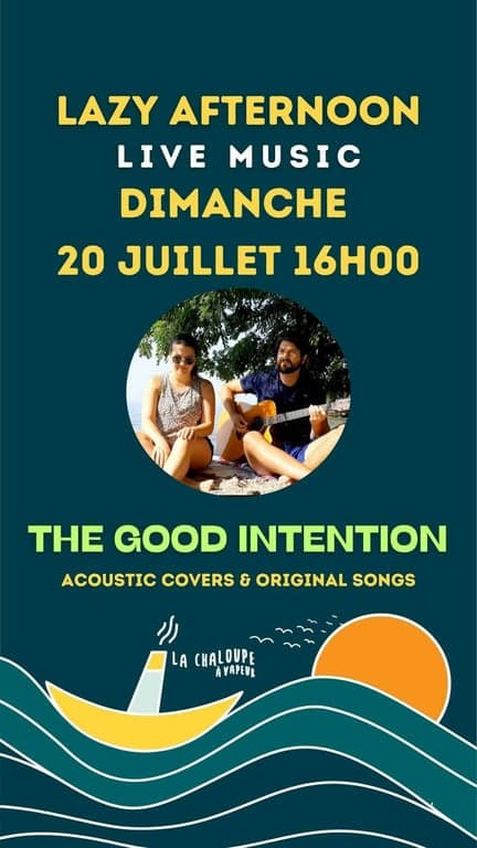 Dès 16h, viens vibrer au son du duo acoustique The Good Intentions ! 🌞
