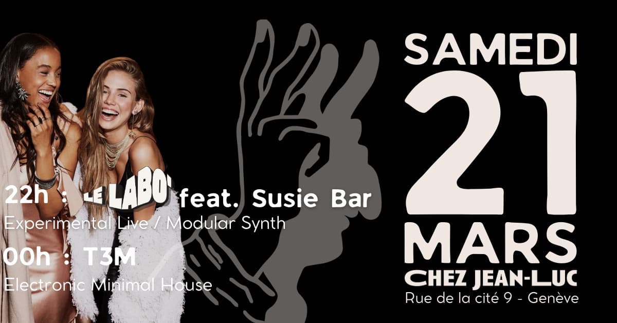 Rendez-vous Samedi 21 Mars Chez Jean-Luc : Le Labo' feat. Susie Bar pour une immersion Experimental Live / Modular Synth et T3M pour une soirée Electronic Minimal House