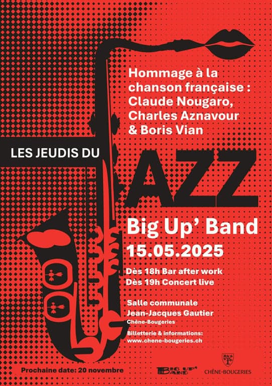 CONCEPT INÉDIT À GENÈVE : un concert live du fantastique Big Up’ Band dans une ambiance de club de jazz, accompagné de son bar after work. Profitez d’un moment convivial ! Dès 19h00, deux sessions de 45 minutes de musique live durant lesquelles vous pourrez déguster boissons et petite restauration, confortablement installés comme dans un bar lounge