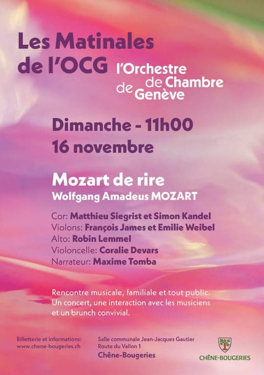 Mozart de rire, un spectacle bien loin des sentiers battus ! L’œuvre se situe à l’intersection de la musique et du théâtre, fusionnant humour burlesque et interactivité ludique, tout en respectant la grande tradition musicale. Un dialogue innovant s’y dessine, invitant les spectateur·ice·s à un voyage où l’écoute attentive rencontre l’échange dynamique. Maxime Tomba, corniste du quatuor et scénariste de Mozart de rire, nous livre certains de ses secrets.