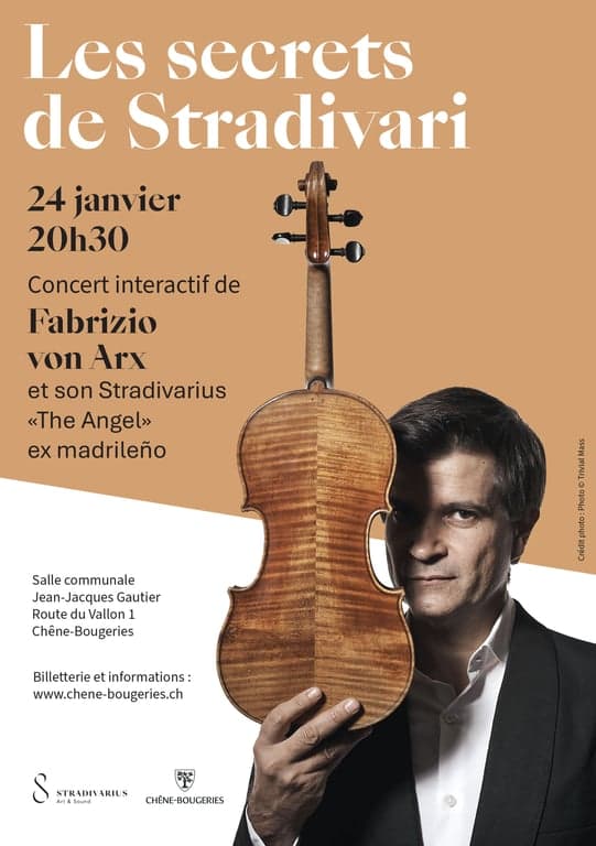 Fabrizio von Arx. Découvrez ou redécouvrez 300 ans d’histoire de la musique classique à travers un génie de la lutherie : Antonio Stradivari, un violon d’exception: le Stradivarius de 1720 «The Angel» ex-Madrileño, et un violoniste virtuose. Fabrizio von Arx vous propose de vous démontrer que la sonorité d’un violon et le jeu de son interprète sont de puissants vecteurs d’émotions.