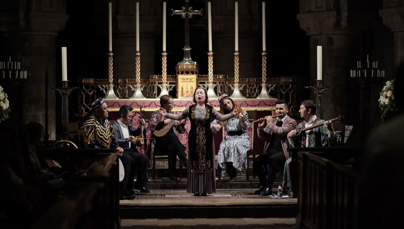Dirigé par la célèbre chanteuse ouïghoure Rahima Mahmut, il réunit des instrumentistes et des chanteurs profondément enracinés dans les traditions de leurs diverses communautés. Son répertoire s’étend du maqām de la musique classique d’Asie centrale, aux traditions spirituelles des Soufis de cette même région ainsi que des Alevis d’Anatolie, en passant par les répertoires classiques et populaires du Moyen-Orient, notamment d’Azerbaïdjan, de Turquie et de Syrie