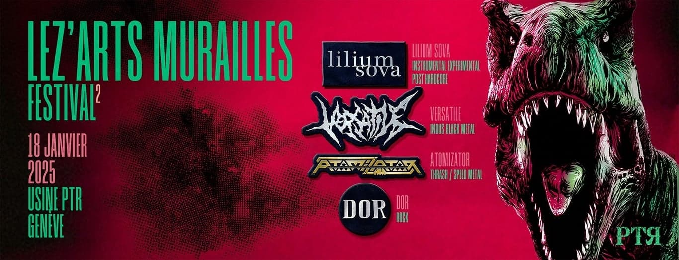 Lez’Arts Murailles, association genevoise à but non lucratif fondée en 2000, a pour mission de mettre à disposition des espaces pour les collectifs artistiques engagés dans la scène musicale de Genève. L’association tient à exprimer sa profonde gratitude envers le Département des Affaires Culturelles, la Gérance Immobilière de la Ville de Genève, PTR, ses précieux bénévoles, la Loterie Romande, et la Ville de Genève pour leur soutien indéfectible.