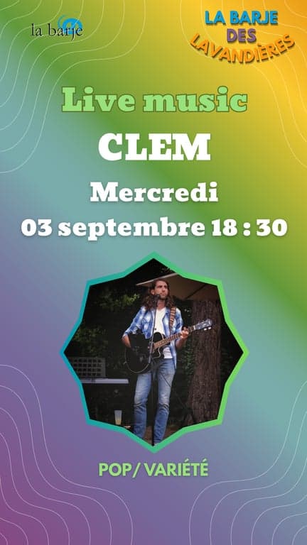 Rendez-vous le mercredi 3 septembre à 18h30 à La Barje des Lavandières pour un concert plein de sincérité avec Clem (@clem.wanderer) 🎤🎹🎸.