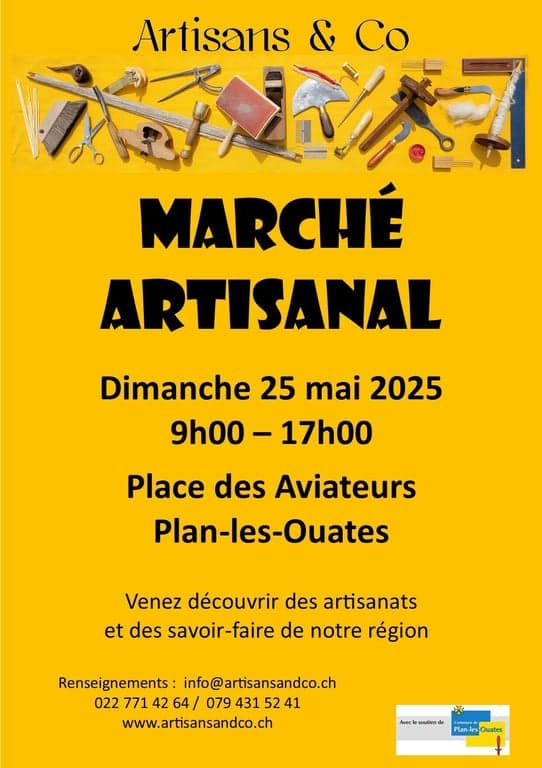 Marché artisanal avec une vingtaine d'artisans sur la place des Aviateurs, le dimanche 25 mai 2025 de 9h à 17h