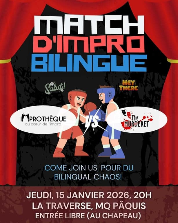 Préparez-vous, Geneva! For the first time ever, two improv troupes are stepping into the ring. The Murderet and Improthèque will face off in a unique show performed in English 🫖 and French 🥖!