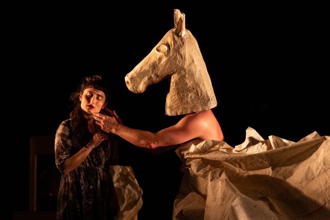 Tout ce qui fait la magie et le succès de la célèbre compagnie franco-catalane Baro d’evel se trouve là, dans Mazùt : un spectacle fondateur, pensé pour être vu au-delà des âges, le creuset magnifique d’un art foisonnant où dialoguent danse, acrobatie, jeu, chant, matière, musique, peinture. On ne « regarde » pas Mazùt, on plonge dans un tableau vivant offert à tous les sens, où s’enchaînent les prouesses parfaitement exécutées de deux êtres fragiles et maladroits, en quête de leur animal intérieur. « Souffler, respirer. N’être plus que quatre pattes, un être qui respire et regarde le monde. »